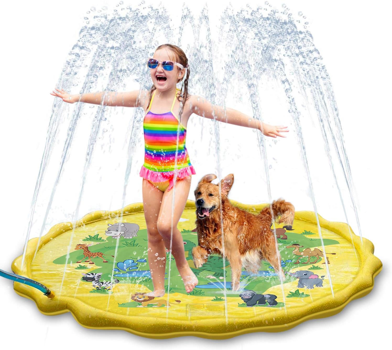 Amazon has HYFAM Sprinkler Splash Play Mat Pad, 68‘’ Anti-Slip Outdoor Mini Swimming Pool, Portable Wading Pool Summer Water Party Spray Toys Garden Family Activities for Kids on sale for $32.99.